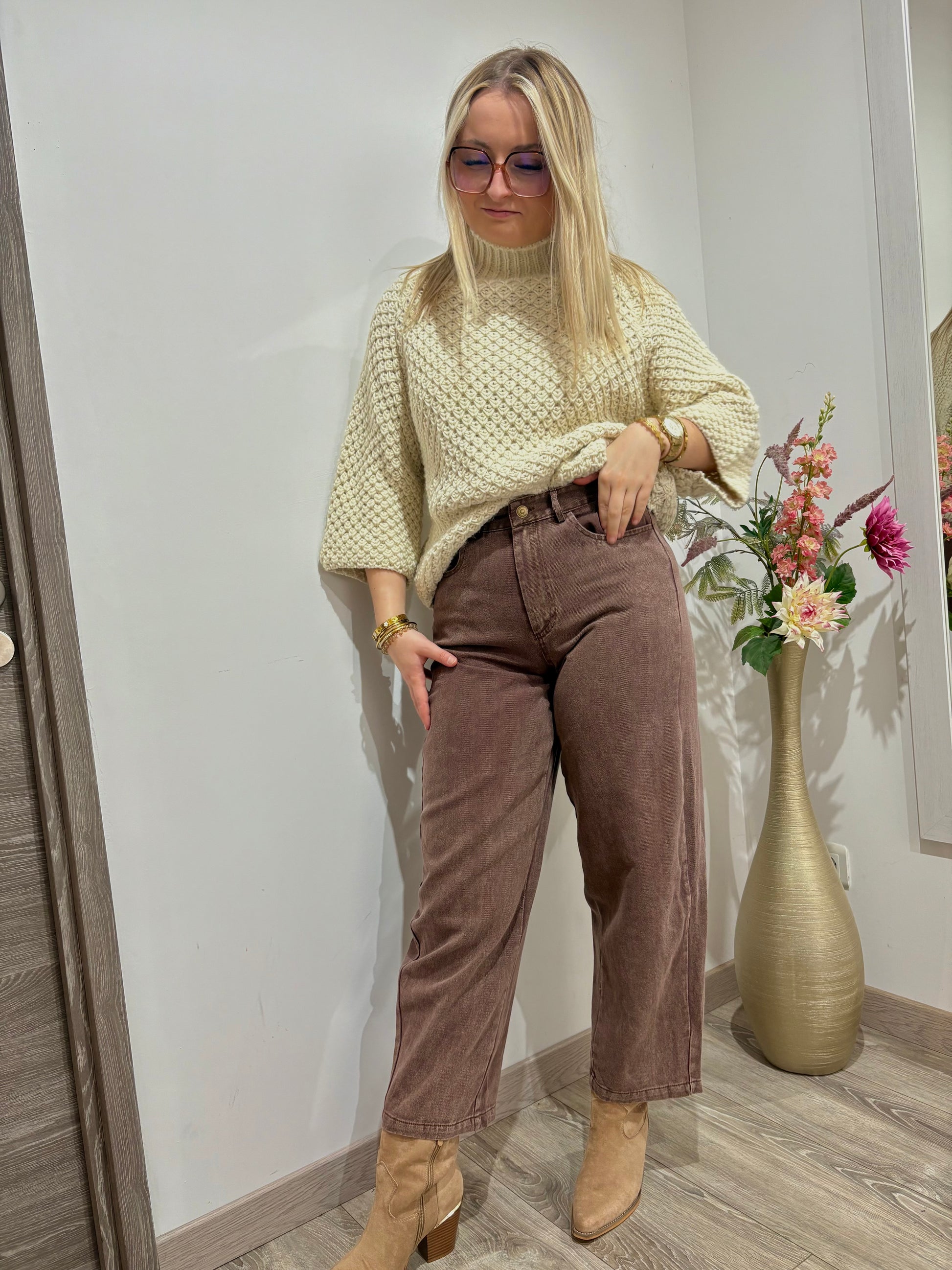 Sa teinte chocolat profonde et chaleureuse apporte une touche sophistiquée à toutes vos tenues. Facile à associer, ce jean s’accorde aussi bien avec un t-shirt oversize qu’une chemise ajustée ou un pull en maille clair.