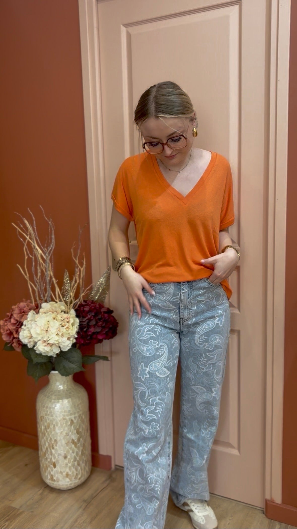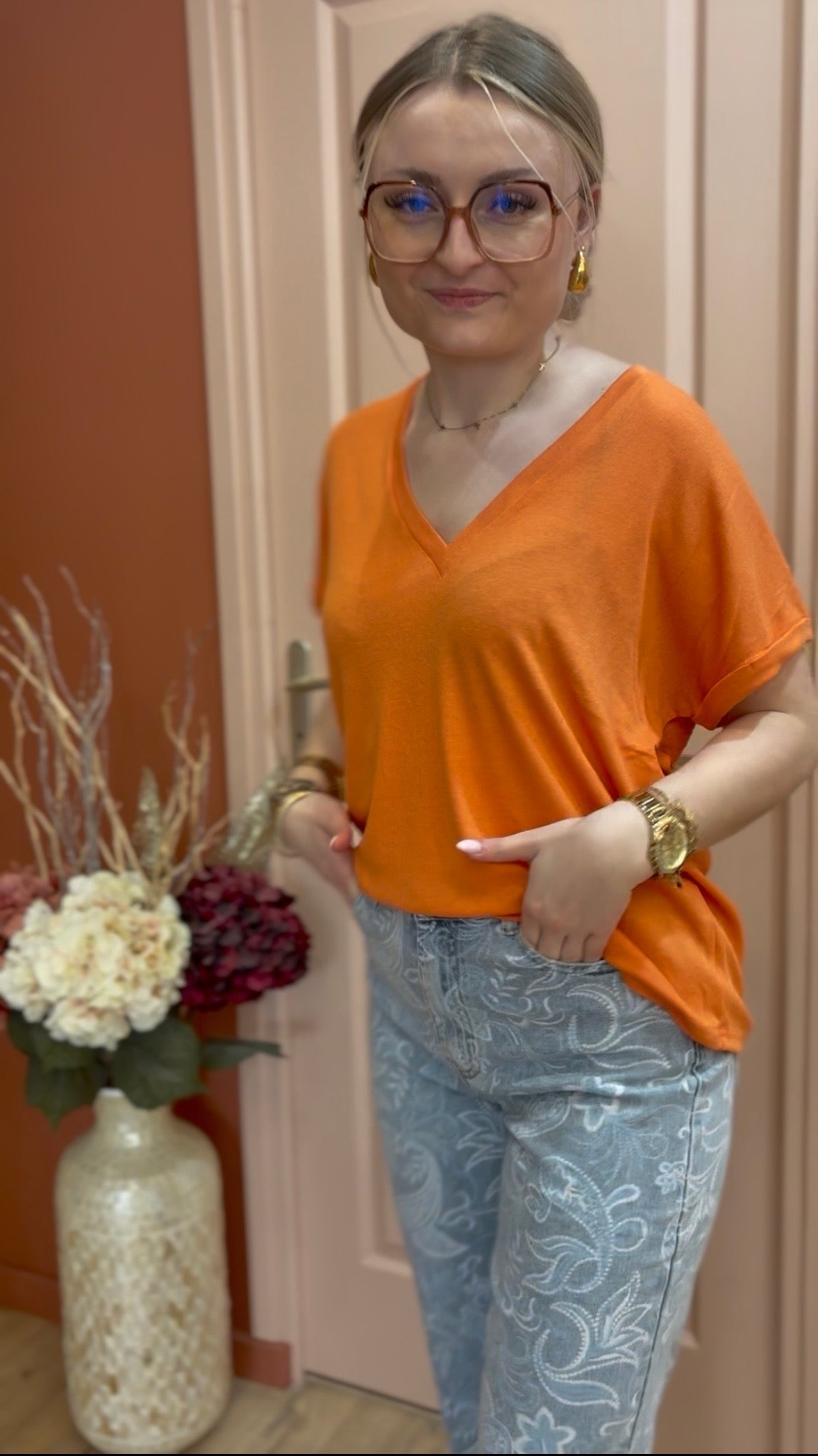 Craquez pour ce top pull à la coupe fluide et féminine, parfait pour un look casual chic au quotidien. Sa jolie teinte orange apporte une touche chaleureuse et tendance à votre tenue, facile à associer avec un jean, un pantalon clair ou une jupe.