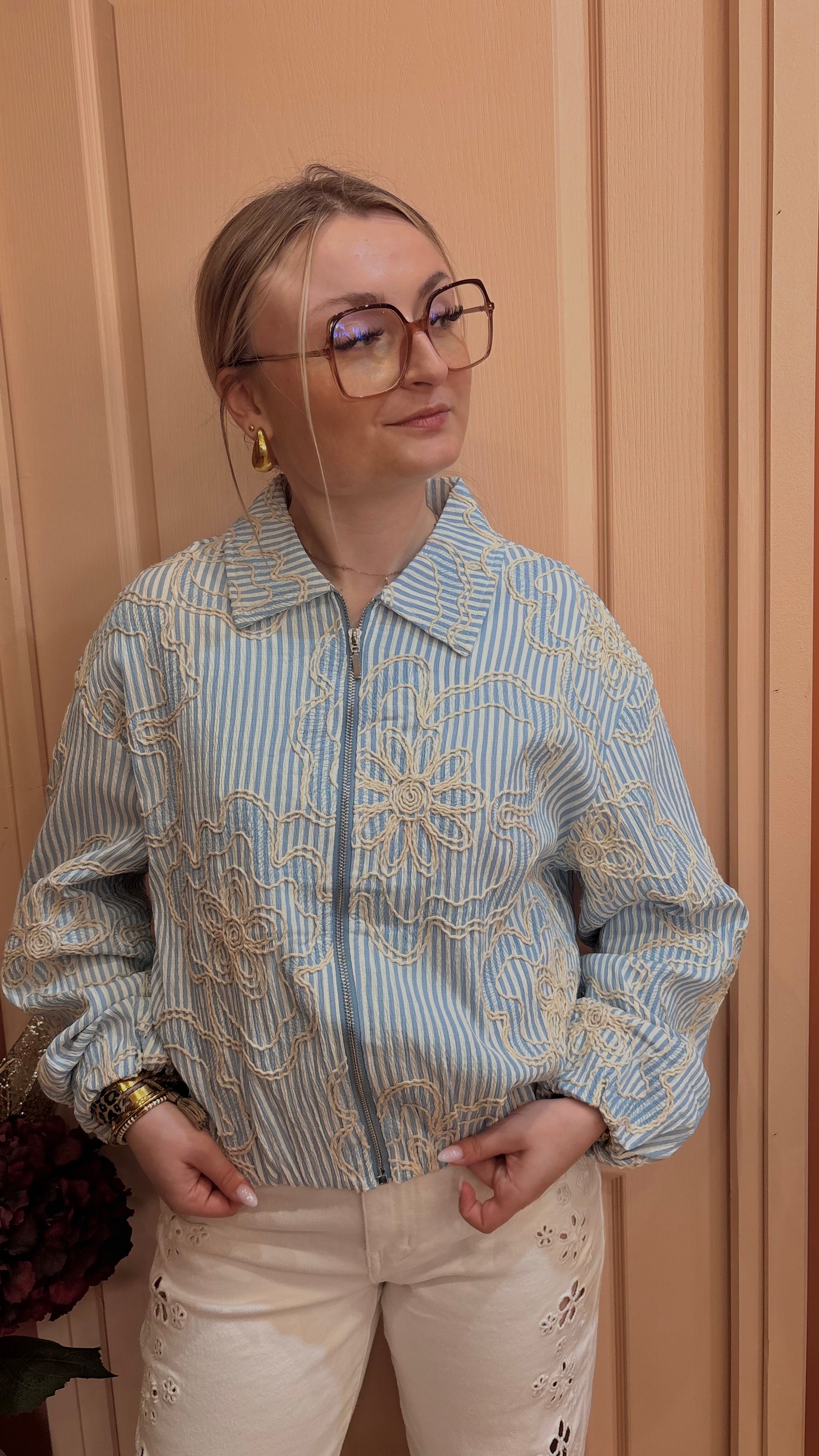 Découvrez notre veste bombers bleue avec broderie sur les manches, une pièce tendance qui allie style urbain et élégance moderne. Confectionnée dans une matière de qualité, cette veste offre une coupe confortable et un look intemporel. Les broderies détaillées sur les manches apportent une touche originale et sophistiquée, idéale pour affirmer votre personnalité.