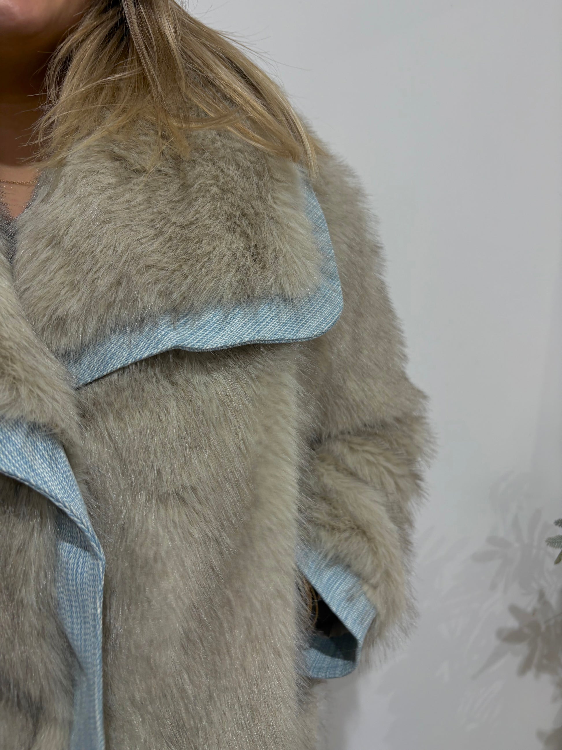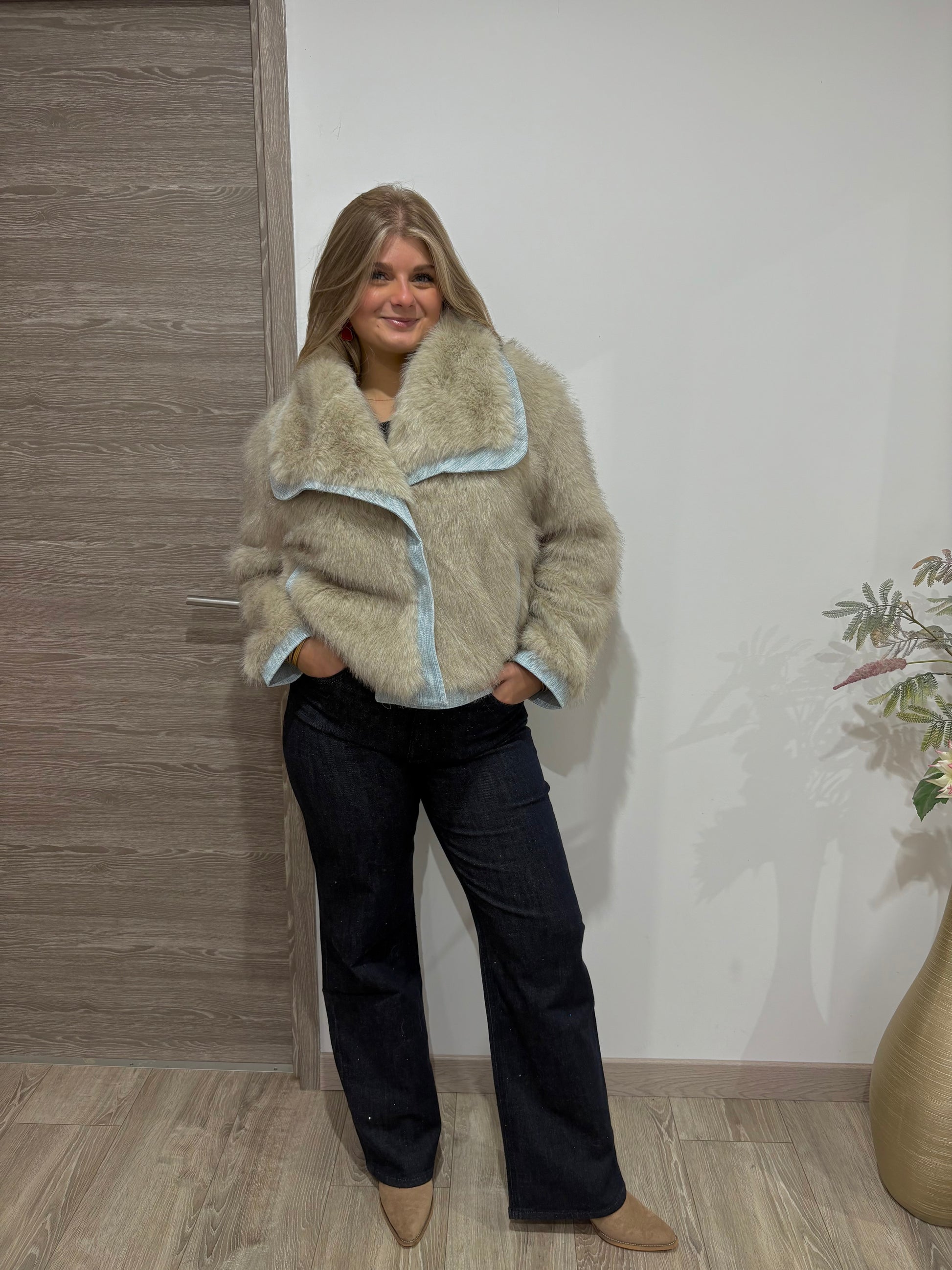 Découvrez notre fourrure couleur écru au style unique, sublimée par des contours en jean pour un look à la fois moderne et intemporel. Douce, élégante et confortable, cette pièce est idéale pour apporter une touche tendance à vos tenues d’hiver. Son coloris écru lumineux s’adapte facilement à toutes les garde-robes, tandis que les finitions en jean offrent un contraste original et résolument mode